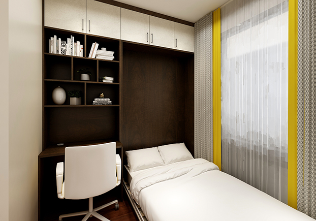 ▲該空間較小,一眼望去可以發現該空間既能當書房,又能儲物,又可以是一個人的私人空間,家里臨時有客人來還能是一個簡易的單人床,何樂而不為?