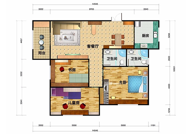 131m2三房兩廳,家有二胎必看!